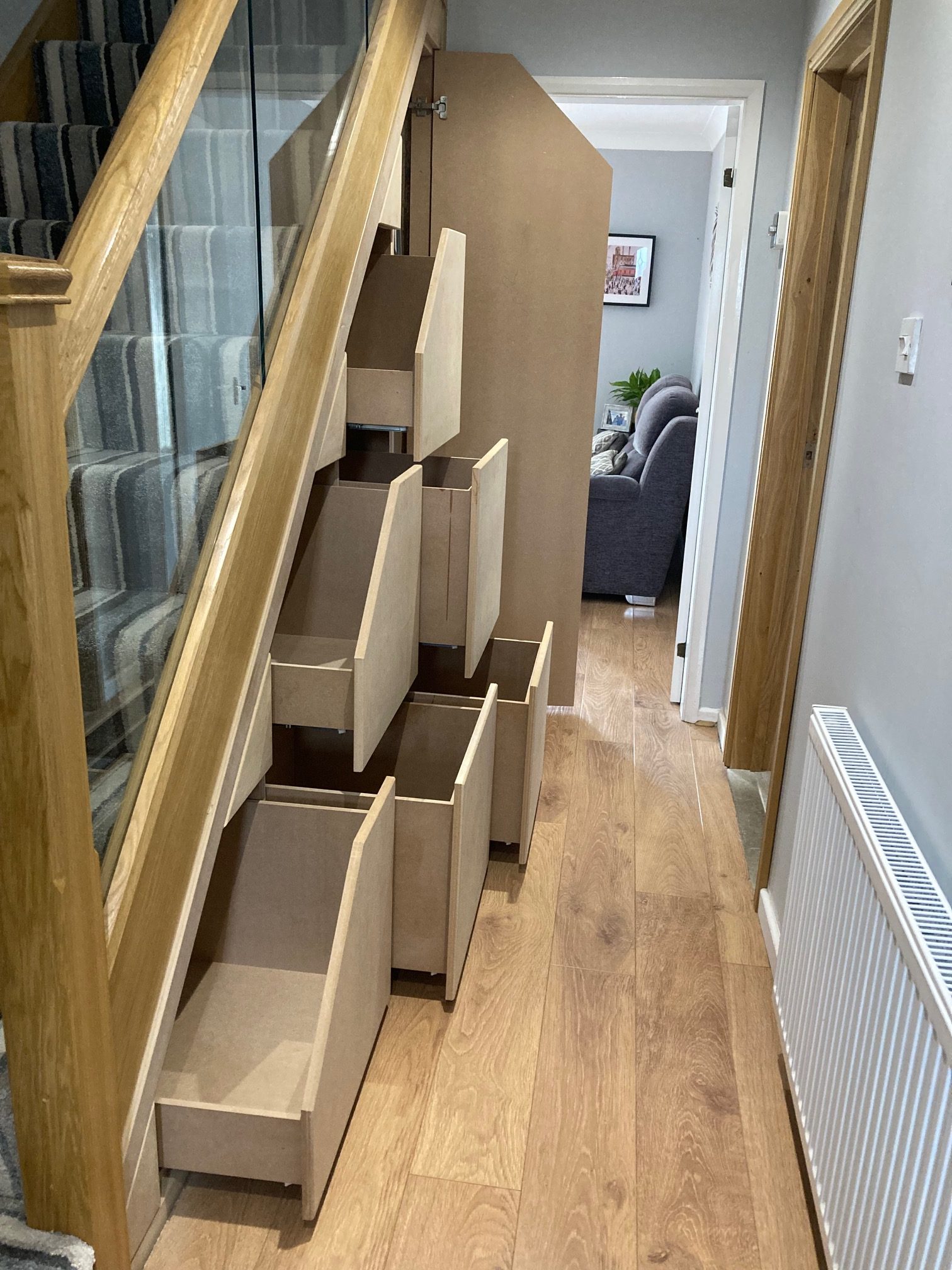 Rudge Carpentry did an outstanding job creating our bespoke under-stair storage system. The craftsmanship is exceptional, with every detail finished to perfection. The team were professional, tidy, and clearly take pride in their work. Our new storage fits seamlessly with the rest of the house and has transformed the space. We couldn’t be happier and highly recommend Rudge Carpentry for quality bespoke carpentry.